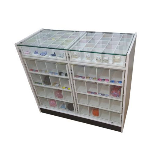 10 gavetas subdivididas para botões e miudezas em geral e tampo e frente em vidro temperado